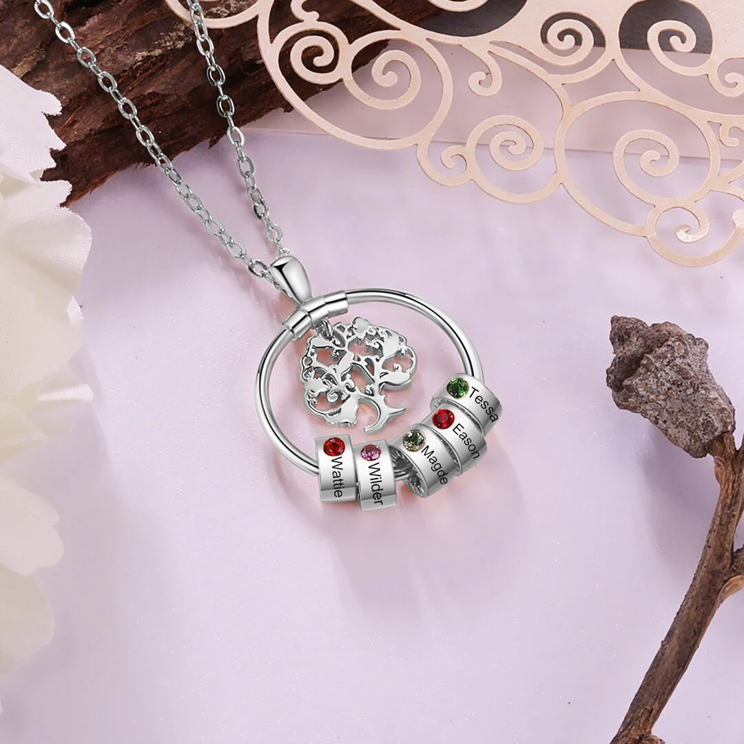 Honor your sister with this personalized sister necklace! This necklace can be engraved with all your sisters/friend's names and birthstones and gives her companionship wherever she goes. With personalized names of all her sisters/friends engraved around the Tree of Life pendant, this necklace will make a meaningful gift for a sisters/friends to cherish forever! Customize the sisters/friends necklace with your names and show your sisters/friends how much you love her!